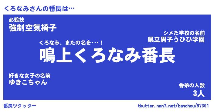 | ヘコむあだ名 | 『くろもー』『つくし』『くろ太郎』 |