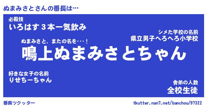 | 2回繰り返すあだ名 | 『ぬまぬま』『ぬぬまま』『うねうね』 |