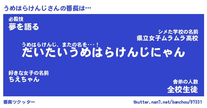 | 肩書あだ名 | 『うめはらけんじ店長』 |