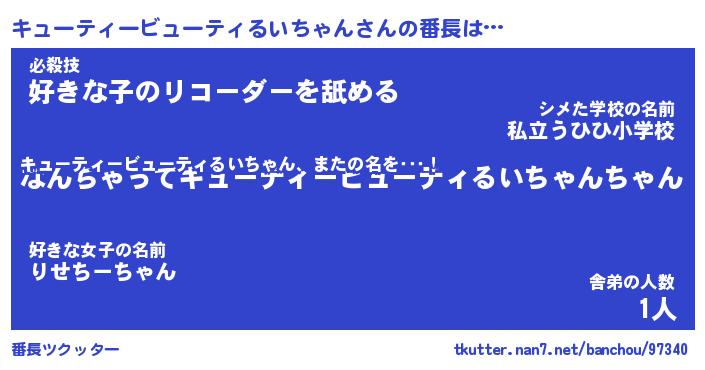 | 伝説のあだ名 | 『伝説のスナイパーキューティービューティるいちゃん』 |