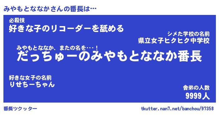 | 伝説のあだ名 | 『伝説のスナイパーみやもとななか』 |
