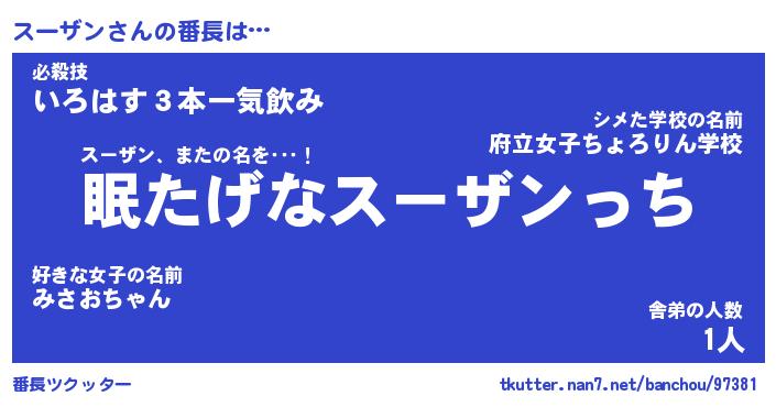 | 意味不明あだ名 | 『ペロリンスーザン』『永久保存スーザン』 |