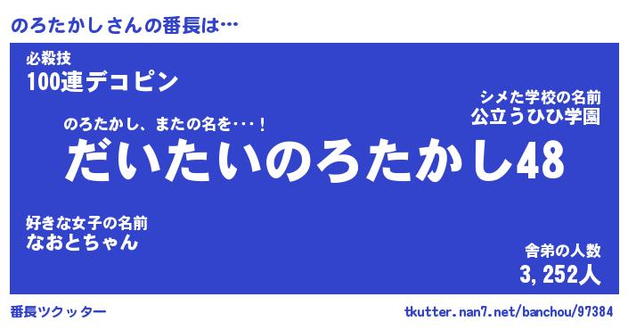 | 伝説のあだ名 | 『不死鳥のスナイパーのろたかし』 |