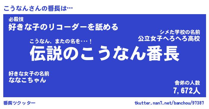 | 伝説のあだ名 | 『伝説のスナイパーこうなん』 |