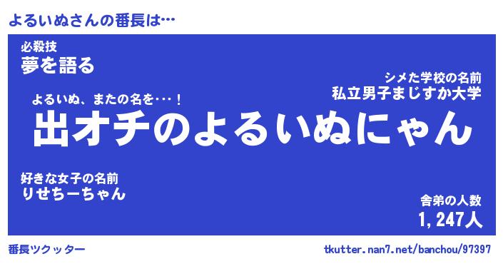 | 欧米人風あだ名 | 『マイケルよるいぬ』『ウサインよるいぬ』 |