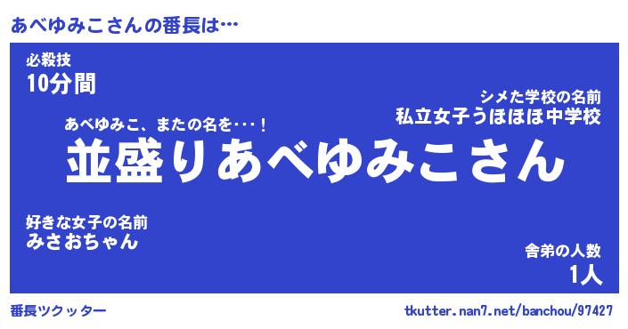 | 肩書あだ名 | 『あべゆみこ社長令嬢』『あべゆみこ団長』 |