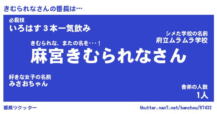 | 伝説のあだ名 | 『不死鳥のスナイパーきむられな』 |