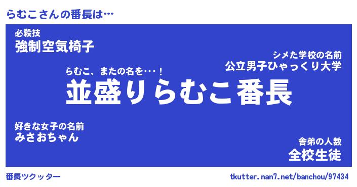 | 2回繰り返すあだ名 | 『らむらむ』『ららむむ』『いらいら』 |