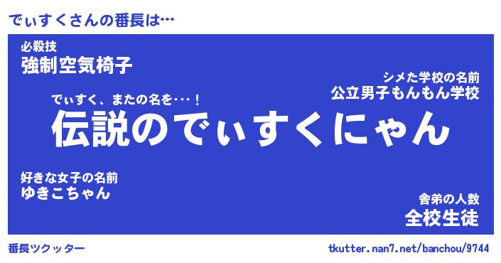 | 欧米人風あだ名 | 『マイケルでぃすく』『ウサインでぃすく』 |