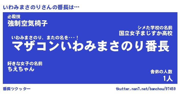 | 伝説のあだ名 | 『封印されしスナイパーいわみまさのり』 |