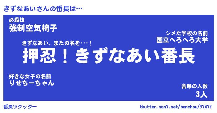 | ヒーロー風カッコイイあだ名 | 『スーパーキズナアイ』『魔戒騎士キズ』 |
