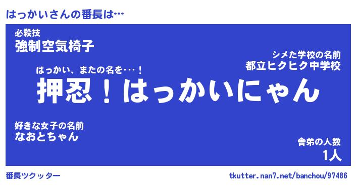 | ヘコむあだ名 | 『はっにゅー』『牛乳』『はっお』 |