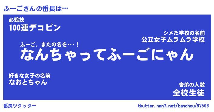 | ファンタジー風あだ名 | 『フーフェル』『エターナルフーゴー』 |