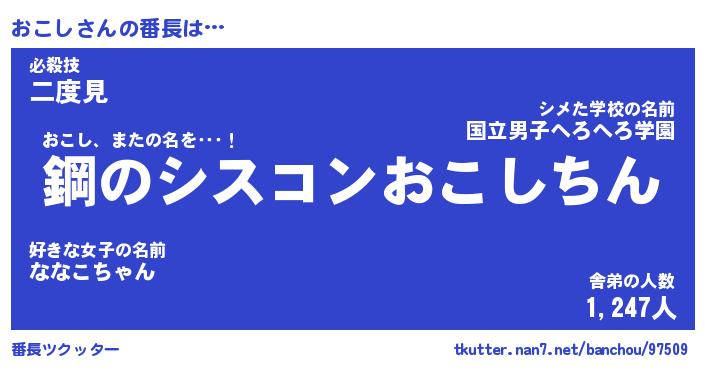 | ヒーロー風カッコイイあだ名 | 『スーパーオコシ』『ウルトラおこしマン』 |