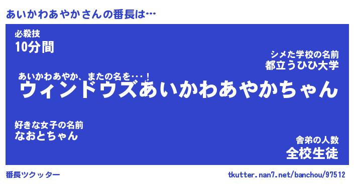 | 肩書あだ名 | 『あいかわあやか御曹司』 |