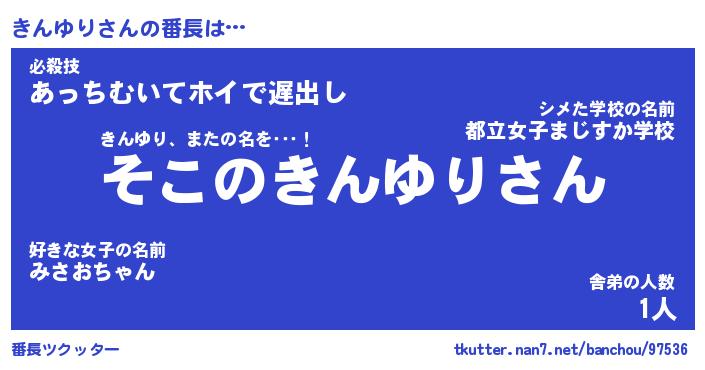 | 意味不明あだ名 | 『ペロリンきんゆり』『永久保存きんゆり』 |