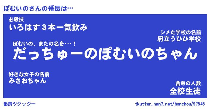 | 伝説のあだ名 | 『伝説のスナイパーぽむいの』 |