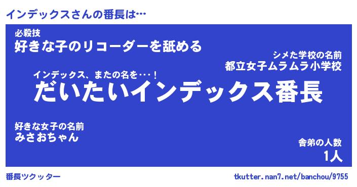 | 男性向けラノベタイトル風あだ名 | 『インデックスの憂鬱』 |