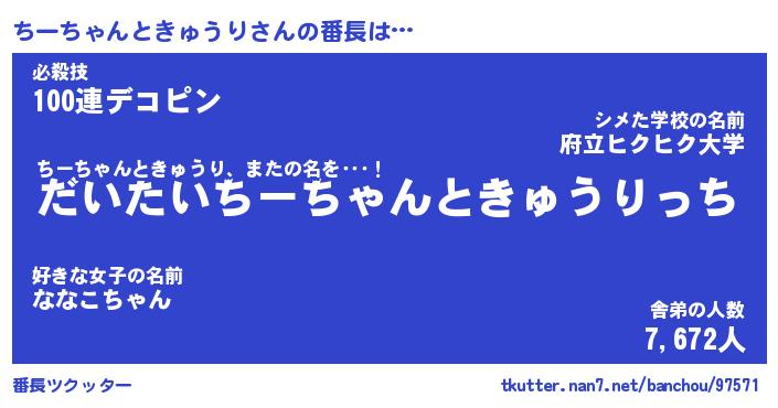 | 肩書あだ名 | 『ちーちゃんときゅうり社長』 |