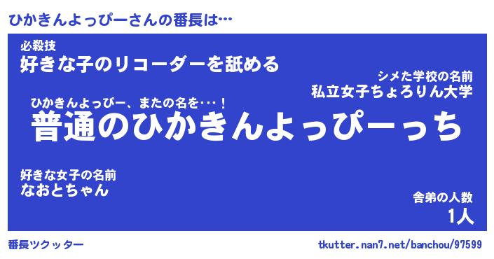 | 男性向けラノベタイトル風あだ名 | 『ひかきんよっぴーの憂鬱』 |