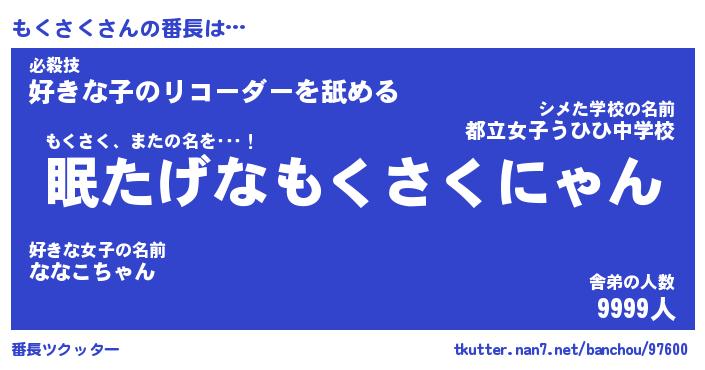 | ポケモン風あだ名 | 『モクチュウ』『モクサダネ』 |
