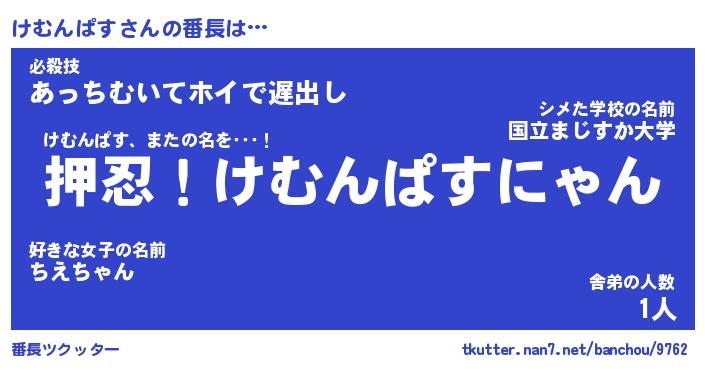 | ヘコむあだ名 | 『けむにゅー』『酢こんぶ』 |