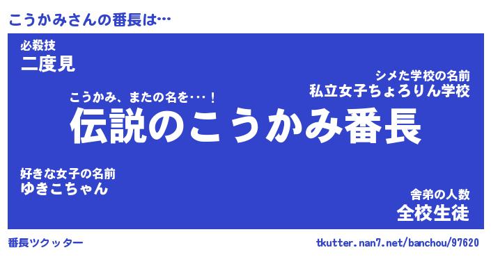 | 伝説のあだ名 | 『伝説のスナイパーこうかみ』 |
