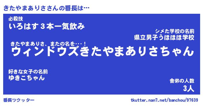 | ヘコむあだ名 | 『きたもー』『なまこ酢』『きたっ子』 |