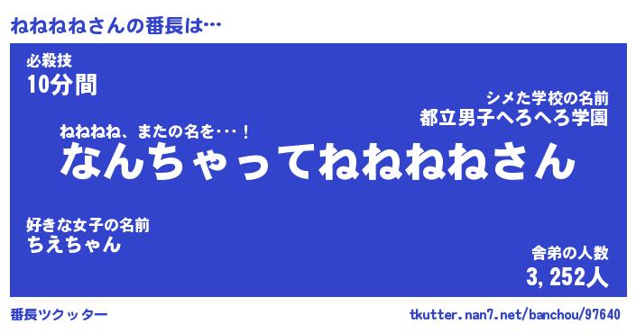 | ファンタジー風あだ名 | 『ネネフェル』『エターナルネネネネー』 |