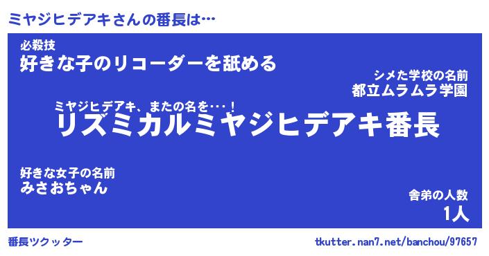 | ヒーロー風カッコイイあだ名 | 『スーパーミヤジヒデアキ』 |
