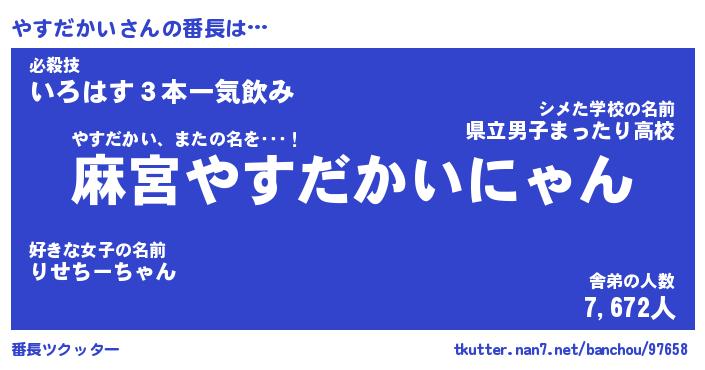 | ファンタジー風あだ名 | 『ヤスフェル』『エターナルヤスダカイー』 |
