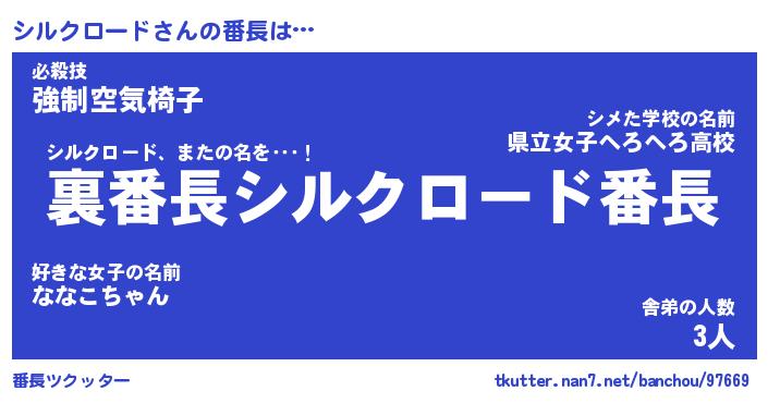 | 肩書あだ名 | 『シルクロード社長』『シルクロード班長』 |