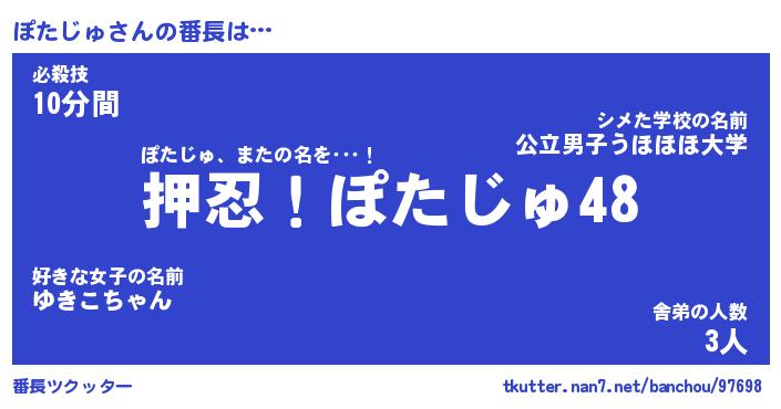 | 恥ずかしいあだ名 | 『プリティーぽたじゅ』『ぽたっちょ』 |