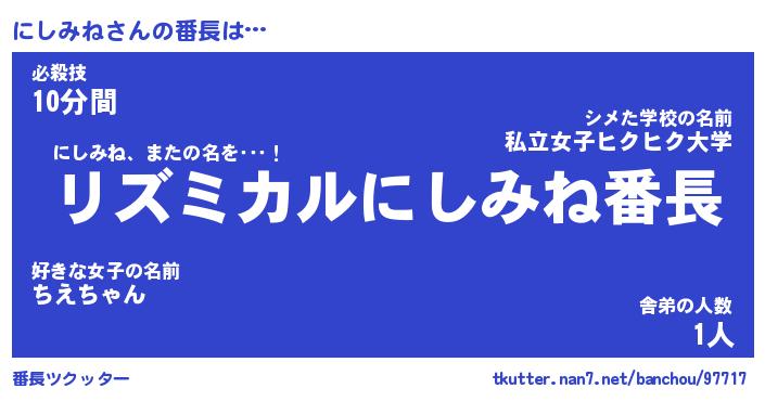 | ファンタジー風あだ名 | 『ニシフェル』『エターナルニシミネー』 |