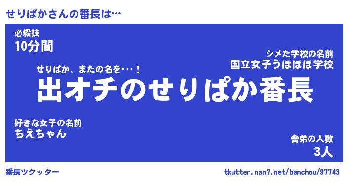 | 意味不明あだ名 | 『ペロリンせりぱか』『永久保存せりぱか』 |