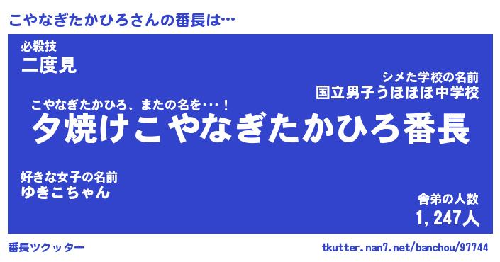 | 伝説のあだ名 | 『封印されし竜騎士こやなぎたかひろ』 |