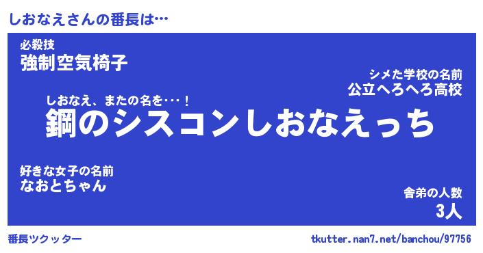 | ヒーロー風カッコイイあだ名 | 『スーパーシオナエ』『暗黒騎士シオ』 |