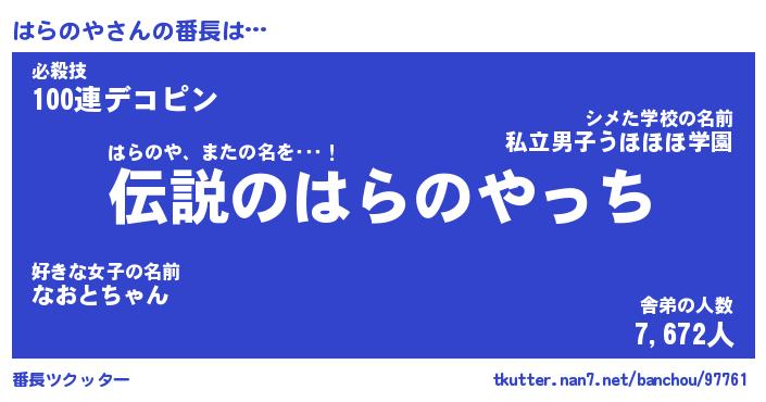 | ピコ太郎風あだ名 | 『ハコ次郎』『ピハ太郎』『ハラ一郎』 |