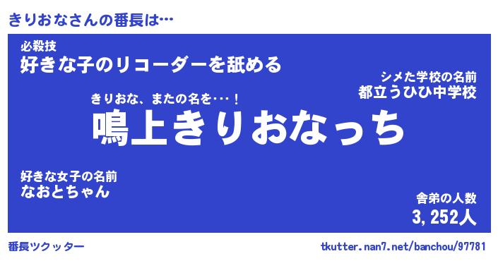 | 意味不明あだ名 | 『ペロリンきりおな』『永久保存きりおな』 |