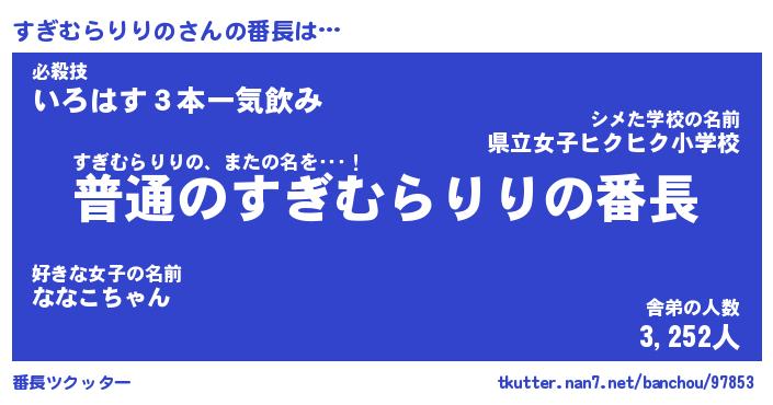 | 2回繰り返すあだ名 | 『すぎすぎ』『すすぎぎ』『ぬぷぬぷ』 |