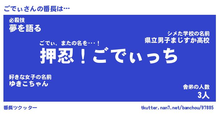 | 伝説のあだ名 | 『封印されしスナイパーごでぃ』 |