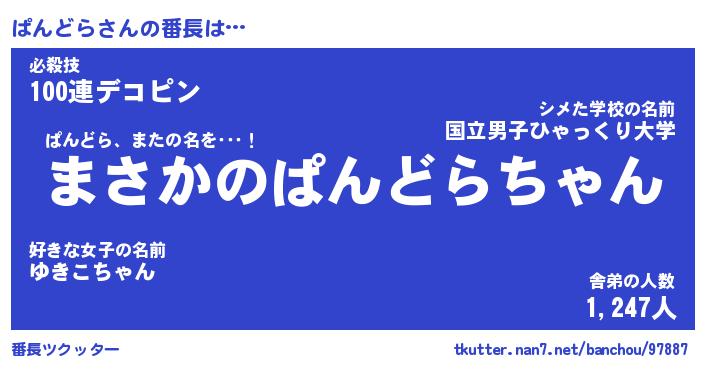 | 肩書あだ名 | 『ぱんどらCEO』『ぱんどら総理大臣』 |