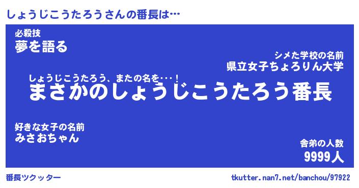 | 伝説のあだ名 | 『伝説のスナイパーしょうじこうたろう』 |