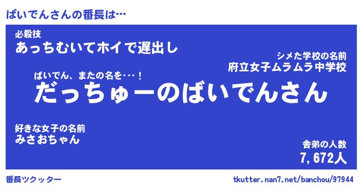 | 伝説のあだ名 | 『伝説のスナイパーばいでん』 |