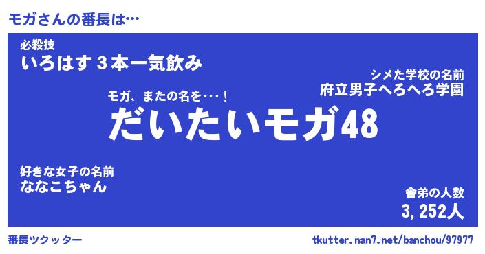 | ヒーロー風カッコイイあだ名 | 『スーパーモガ』『ウルトラモガマン』 |