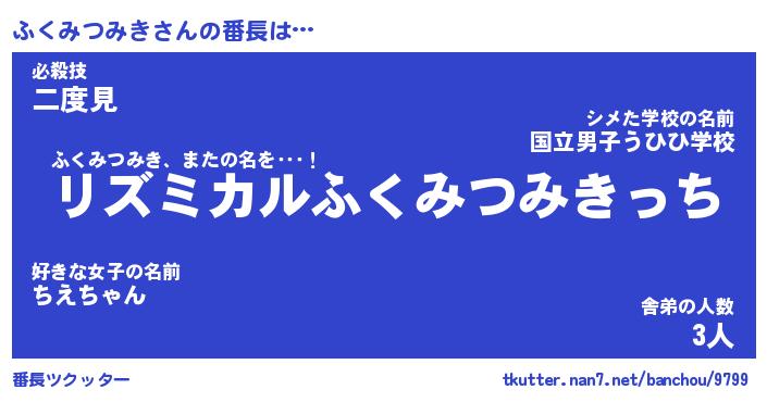 | 伝説のあだ名 | 『伝説のスナイパーふくみつみき』 |