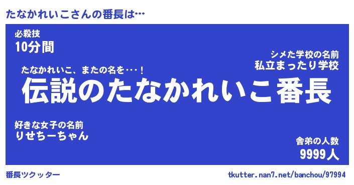 | ヒーロー風カッコイイあだ名 | 『スーパータナカレイコ』『暗黒騎士タナ』 |