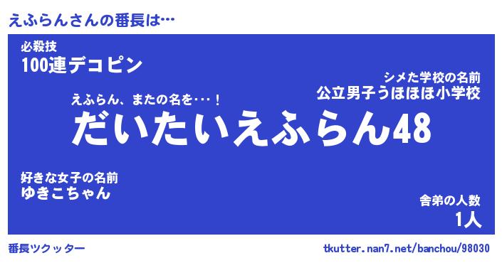 | 意味不明あだ名 | 『ペロリンえふらん』『永久保存えふらん』 |