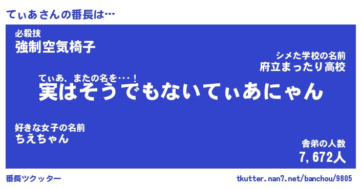| 肩書あだ名 | 『てぃあ社長令嬢』『てぃあ総理大臣』 |