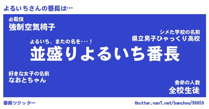 | 伝説のあだ名 | 『不死鳥のスナイパーよるいち』 |